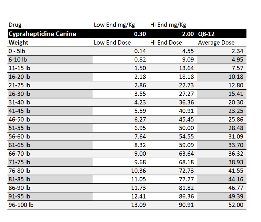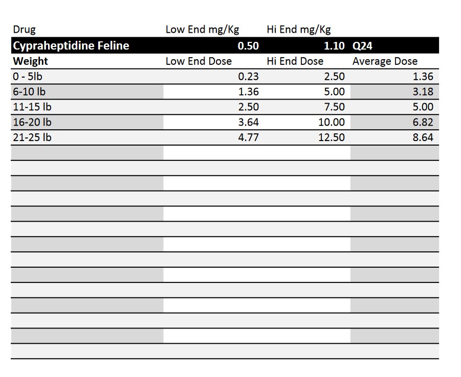 Cat dosing can be 2mg/cat or 4mg/cat Q8-12 hours.