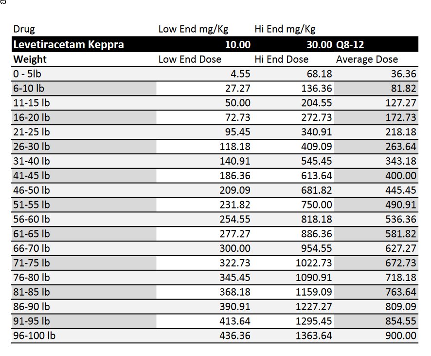 Keppra – Give one tablet less per day til you’re not giving any.