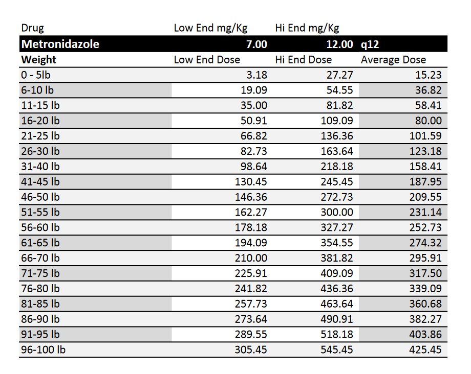 Dog: Double dose but only ONCE per day for Giardia.