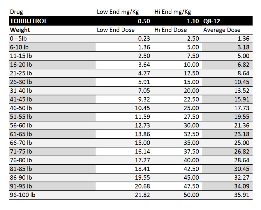 Torbutrol Butorphanol November 2, 2020 Drug Dosages Dog dosing for cough For pain: High end dosing. Like, ten times the cough dose.