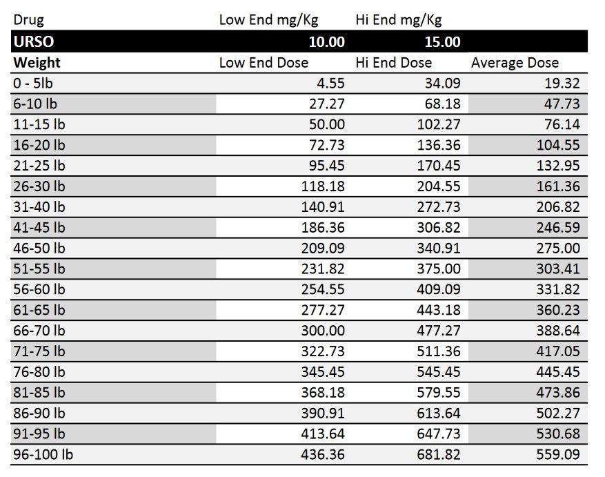 Ursodiol Urso Actigall November 2, 2020 Drug Dosages Dog and Cat: 5 to 10mg/lb PO Q24 Another dose is 15mg/lb PO SID